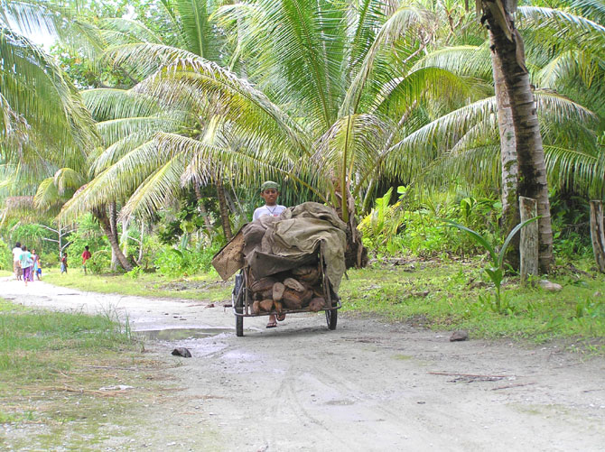 ![]() 石焼の材料を運ぶ10歳のマティニ。 |