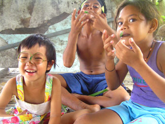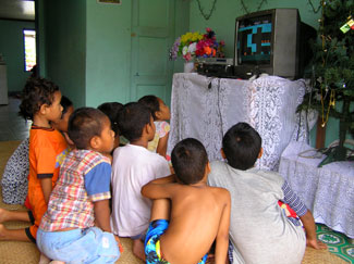 ウムとは一転する、セメントハウスの中。外でたくましく遊ぶ子供らはゲームも大好き。近所の子らがみんな集まってくる。 |