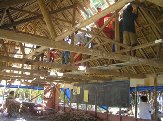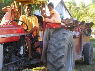 ![]() 島役場「カウプレ」前の告知版。お役所っぽい。 2006年5月の小学校のパンダナス葉屋根の葺き替え。島民がカウプレから時給をもらってやっていた。 ラグーンでの、カウプレの網漁。二人乗りのカヌーで、網をゆっくりおろしているところ。しばらくしたら揚げる。 かかった魚は、ノートに書かれた予約購買人の数に公平に分けていく。ラグーンの魚はおいしいので、みんな喜んで買いにくる。![]() カウプレ所有のトラクター。 ![]() カウプレの隣りにある宿泊所。政府の仕事などで来る別の島の人が泊まったりする。 ![]() 「カウプレ法」(1997年決議)解説書。 島の案件の決定権は「ファレ・カウプレ」に委ねること、などが詳しく説明してある。分厚い…。 ![]() 「カウプレは島民へのゴミ処理指導もしているんだが…」と、ゴミ放棄地帯へ案内してくれた2005年度カウプレ秘書(secretary)ヨアネ氏。処理、といっても実際は各自野焼き。 |