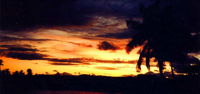 フェアばあちゃんの家で知った、一番シンプルなサモアの夕食は、たろいものココナツミルク煮。サモア語で「ファアリフ・タロ」という。日本での缶詰のココナツミルクを想像するなかれ。がぁこがぁことココナツをすって絞る生きたココナツミルクは、もぉ感動の味!私も毎日がぁこがぁことトライしたが、ものすごう力がいる。あぁ、しんどかった…。 ●夢さん、退場させられる!● 夢さんは、サモアでは「ミティ」と呼ばれた。「夢」のサモア語が「ミティ」なのだ。そのミティ、ある夕食時、機嫌が悪くて癇癪を起こしてギャーギャー泣き出した。この人、泣き出したら止まらない。日本では私も手を焼いていた。すると突然フェアばあちゃん、ミティに一喝。「ミティ!アルエファフォ!(サモア語で「外に出なさい!」)」ミティは力づくで退場させられる。あっけにとられるのは母親の私。 |