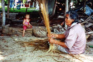 ![]() ココナツの葉でほうきを作るフェアばあちゃん。夢さんはいつもその周りで遊ぶ。 |
